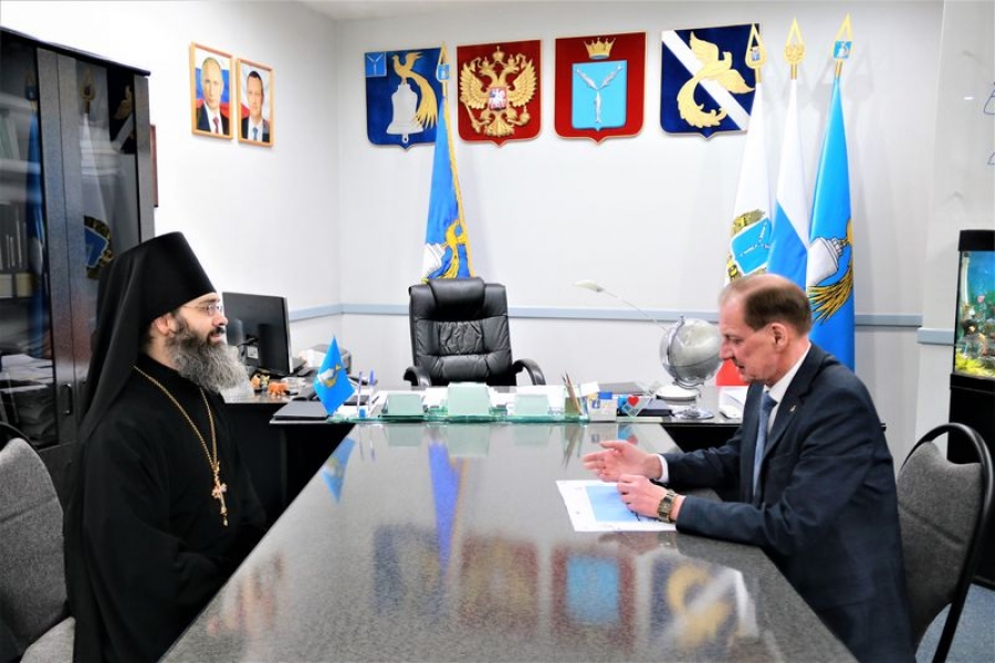 Сегодня глава района П.В. Сурков встретился с секретарём архиерейского совета Саратовской митрополии, секретарём Саратовского епархиального управления,