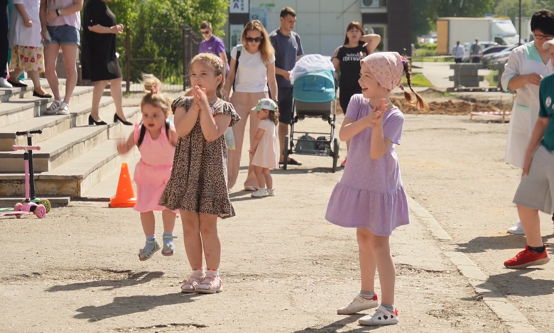 Весёлый спортивный праздник, приуроченный ко Дню защиты детей, прошёл у детского поликлинического отделения № 1 Балаковской районной поликлиники накануне лета.