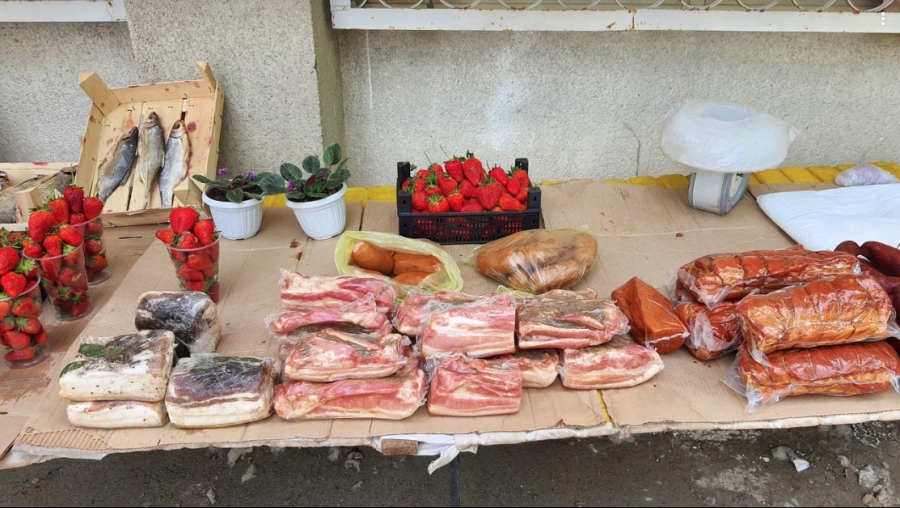 На фотографиях видно, что под открытым небом, без холодильников уличные торговцы продавали колбасу, сало и другие животноводческие продукты, клубнику. Внимание проверяющих привлекли и стихийные палатки с фруктами. Всех торговцев, продающих товары без разрешения, привлекли к административной ответственности.