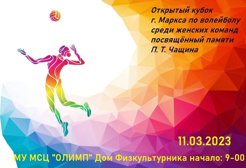 11 марта в 9:00 ч. В здание ФОК расположенный по адресу г. Маркс пр. Ленина д.74 состоится открытие областного турнира по волейболу среди женских команд, посвященный памяти П.Т. Чащина.
