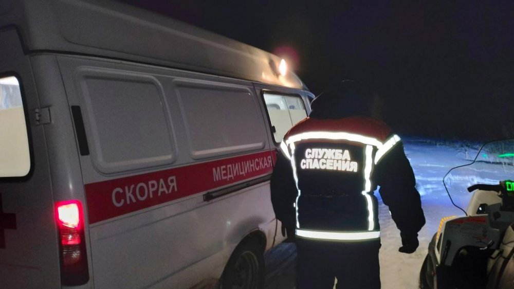 Спасатели вместе с медиками на снегоходе выдвинулись к пациенту. После оказания медпомощи его транспортировали в карету "скорой".
