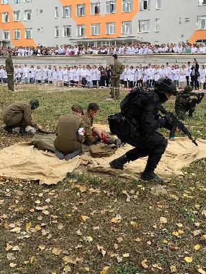 «В ходе мероприятия на территории учебного корпуса была воспроизведена реконструкция военно-полевого госпиталя, были показаны элементы оказания первой помощи, виды эвакуации, сортировка раненых по степени тяжести и оказание необходимой хирургической помощи операционными бригадами.