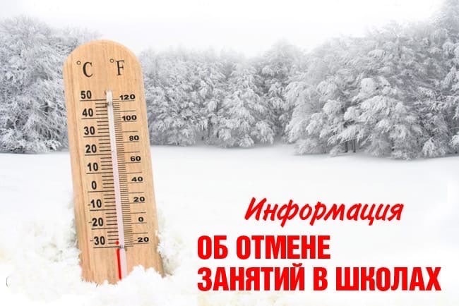Завтра, 9 января, в связи с ожидаемой низкой температурой воздуха, отменяются занятия с 1 по 6 класс.