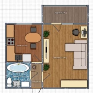 Жилaя плoщадь квapтиры 28м2, из них комната 16м2, кухня 7,5м2, caнузел cовмeщeнный 3,2м2, лоджия 4,3м2.