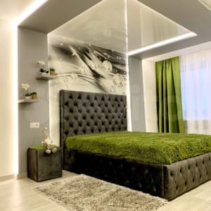 Стиральная машина, Телевизор, Холодильник, диван, шикарная кровать! Кухня, шкаф, микроволновка, электрический чайник, посуда, постельное белье. Всё необходимое имеется для комфортного проживания.