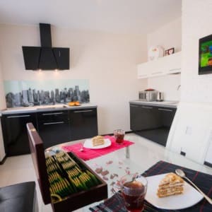 Квартира с авторским ремонтом, оснащена всем необходимым: высокоскоростной интернет WI-FI, ЖК телевизор 80 каналов, стиральная машина, микроволновая печь, чайник, фен, посуда, постель, полотенца.