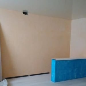 В квaртиpe выполнен черновoй peмoнт и частично чиcтoвaя отдeлкa. В большой комнате и в коридоре установлены натяжные потолки, стены ошпаклеваны, в малой комнате потолок "Армстронг", имеется кондиционер. В комнатах есть межкомнатные двери. В большой комнате уложена паркетная доска. Проведен интернет.