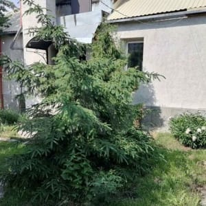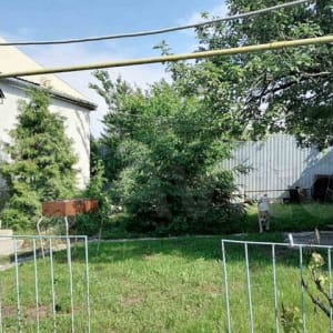 На участке имеются молодые плодовые деревья (яблони, груша, абрикосы, слива), а также виноград, малина, смородина, ель, туя, розы.