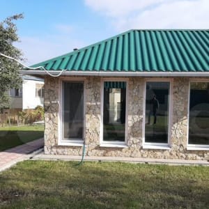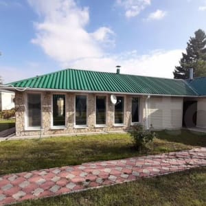 На участке два строения: дом 300 кв.м без отделки и банный комплекс(бассейн, комната, кухня, сауна, душ, туалет)
