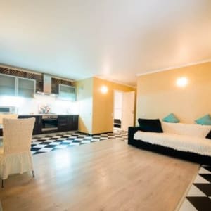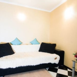 Квартира располагается в 24– этажном кирпичном доме. В квартире имеется 3 спальных места (2+1) , а именно – односпальная кровать и двуспальный раскладной диван.