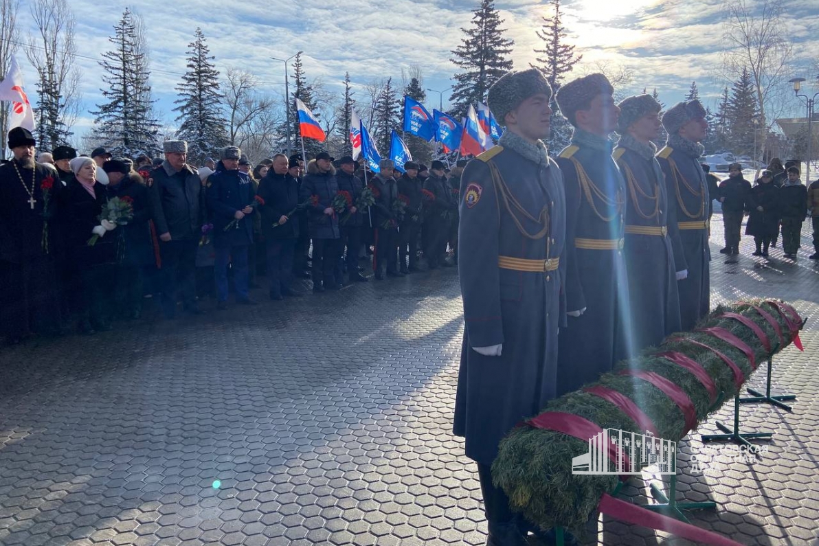 Собравшиеся возложили цветы к Вечному огню у подножия «Журавлей» и у мемориала «Землякам, погибшим в локальных войнах», а также почтили память Героев, павших за Родину, минутой молчания.