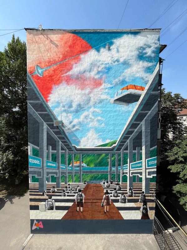 Мурал «Школа будущего» на пересечении Чернышевского и 2-й Садовой уже стал популярен у жителей Саратова и победил в отборочном этапе фестиваля. Его автор - Манучехр Вохидов.