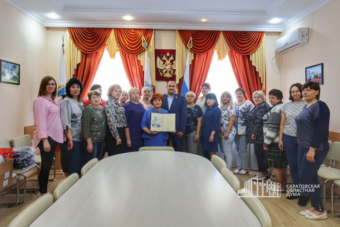 Депутат Саратовской областной Думы Вячеслав Калинин (фракция «Справедливая Россия Патриоты За правду») в ходе посещения центра вручил почетную грамоту Саратовской областной Думы одному из сотрудников. По словам парламентария, это важнейшее учреждение, очень нужное людям.