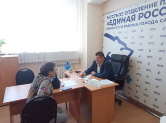 Депутат Саратовской городской думы Вячеслав Тарасов провел прием граждан в местном отделении партии «Единая Россия».