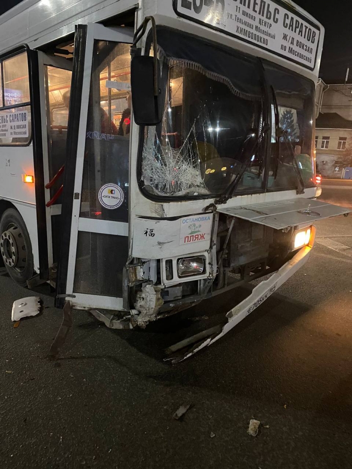 Сегодня вечером в Саратове на Славянской площади произошло ДТП с участием энгельсского автобуса.