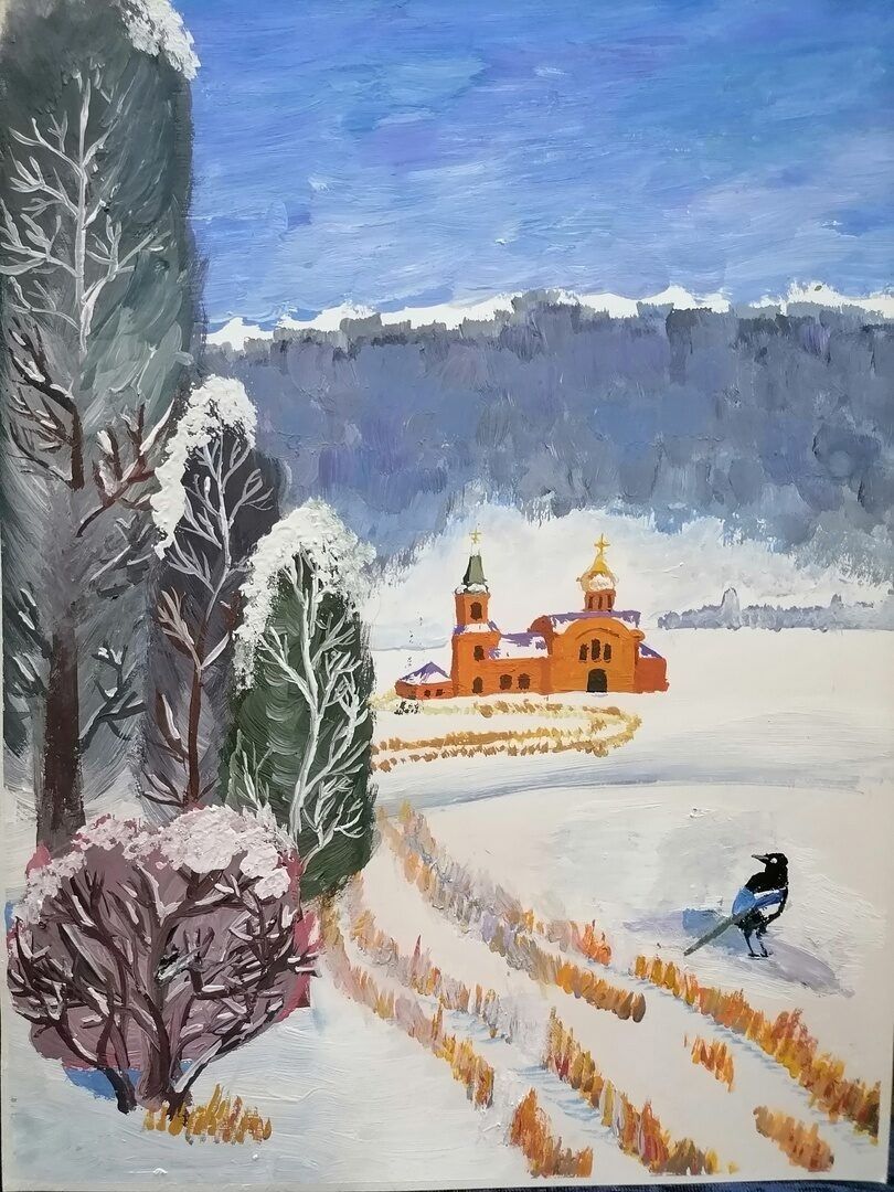 Работы "Зимний денёк", "За околицей" и "Первый снежок" размещены педагогом детской школы искусств Михаилом Головченко в группе "Мы любим рисовать" соцсети "Вконтакте".