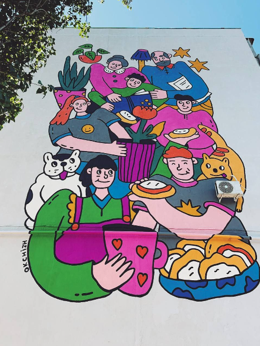 Идея стрит-арта: семья — это единое целое, где каждый её член имеет свои интересы, хобби и настроение. Однако всех их объединяет общий дом, уютные вечера с ватрушками и желание быть вместе.